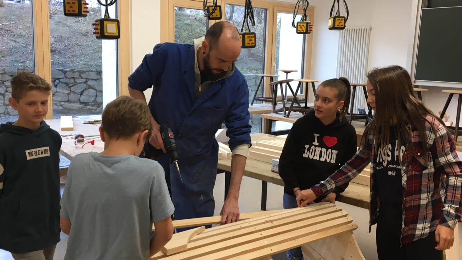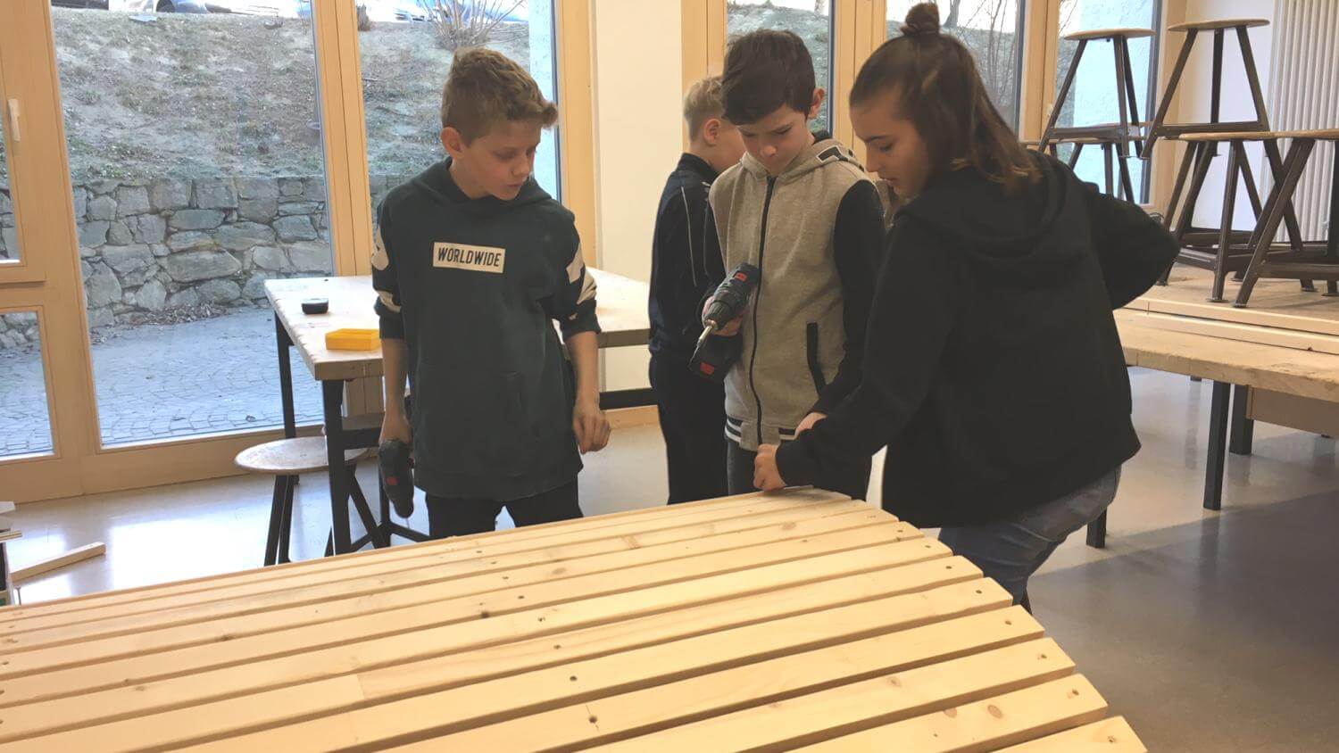 In der Planungsphase zu unserem Holzobjekt konnten wir der Fantasie freien Lauf lassen. Es ist flott mit der ganzen Klasse zusammen zu arbeiten und gemeinsam etwas zu erreichen.